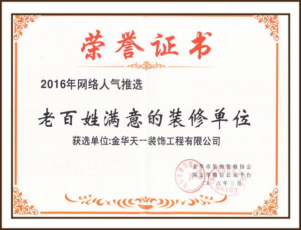 金華市天一裝飾工程有限公司成立于2003年,公司注冊資金31000000萬元,擁有**建筑裝飾專業(yè)承包貳級和建筑工程施工總承包叁級資質。是金華市裝飾裝修行業(yè)核心企業(yè)、金華市裝飾裝修協(xié)會主委單位、金華市裝飾裝修協(xié)會常務理事單位、金華市裝飾行業(yè)優(yōu)秀誠信企業(yè)、中國裝飾行業(yè)網(wǎng)絡誠信品牌、公司于2017年加入金華市東陽商會,是金華東陽商會常務副會長單位。